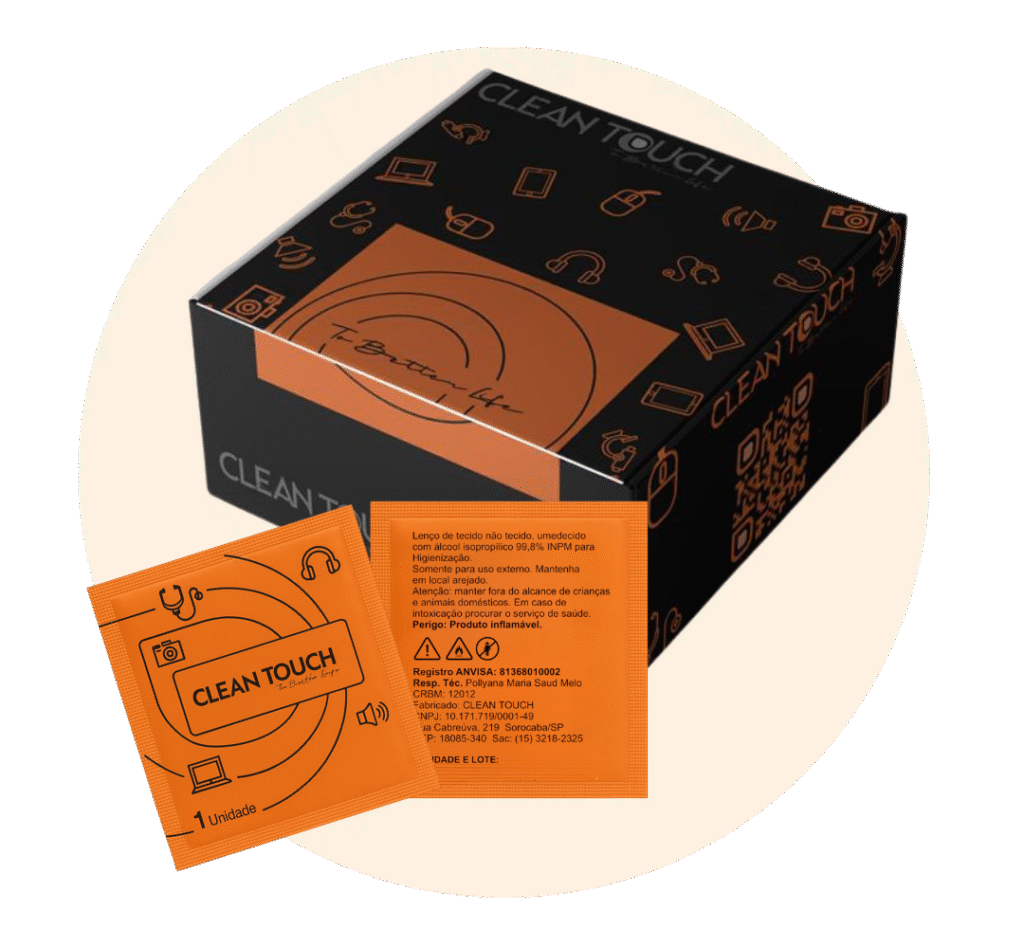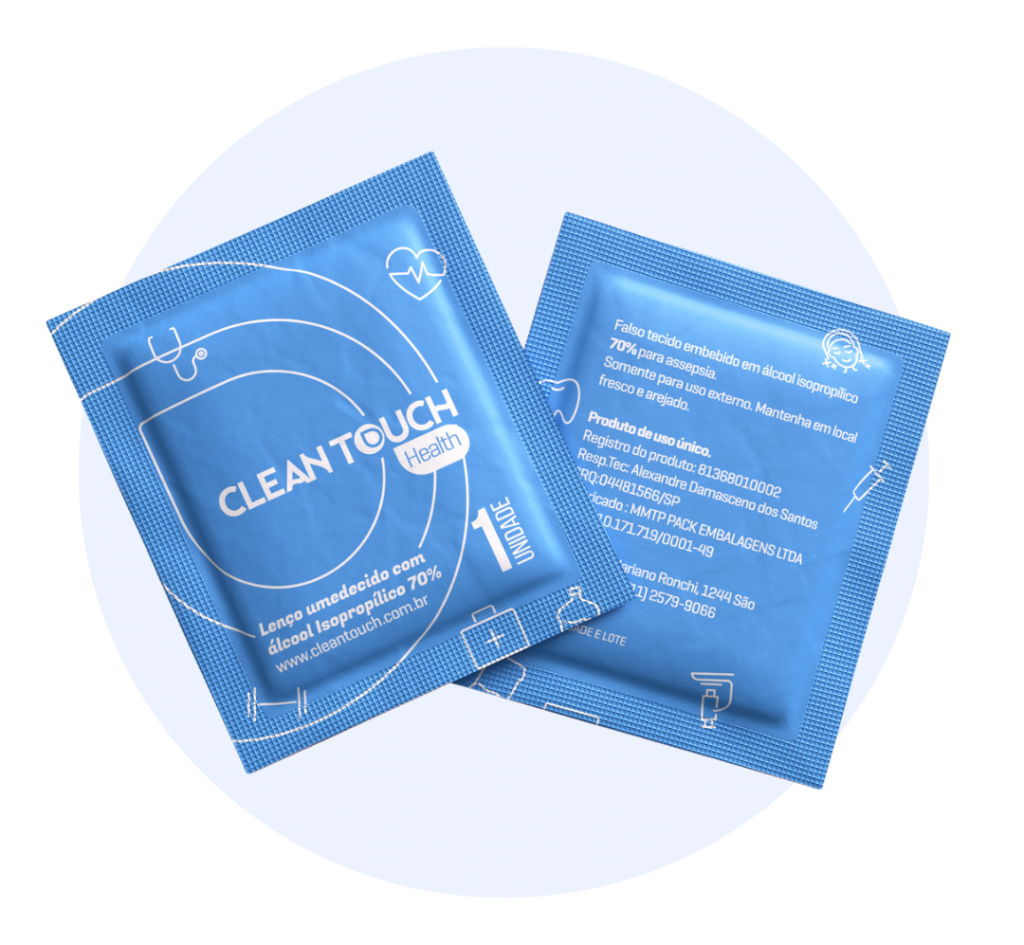 Desde 2011, a Clean Touch é referência nacional na fabricação de sachês com lenços umedecidos para higienização de superfícies — com foco em segurança, inovação e personalização.